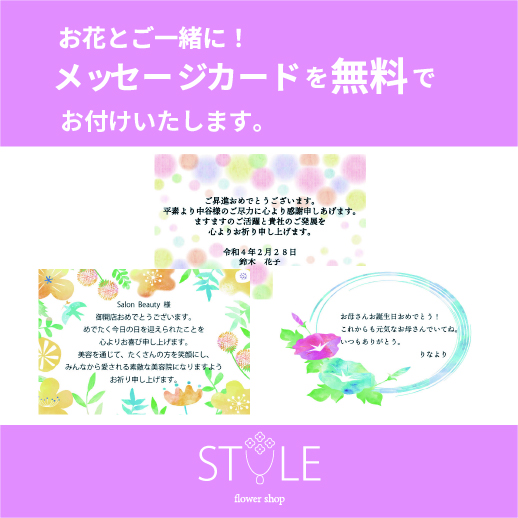 ≪無料≫ ちょっとしたお手紙としてご利用いただけます。ご希望の方はご購入手続きの際にメッセージ内容を備考欄に入力くださいませ。
