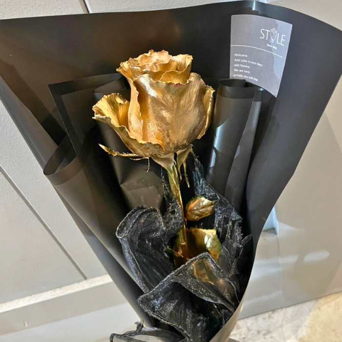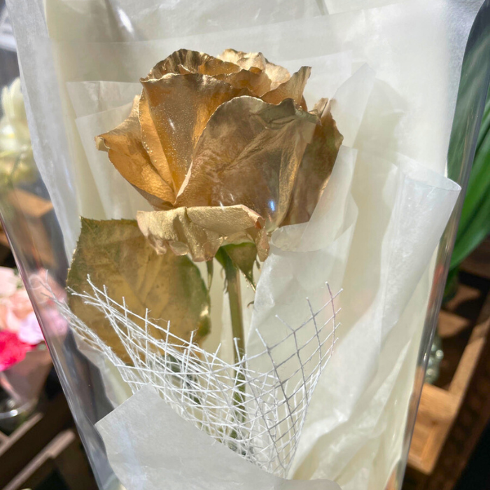 特殊なゴールドコーティングを施した特別な一輪「ゴールドローズ」。