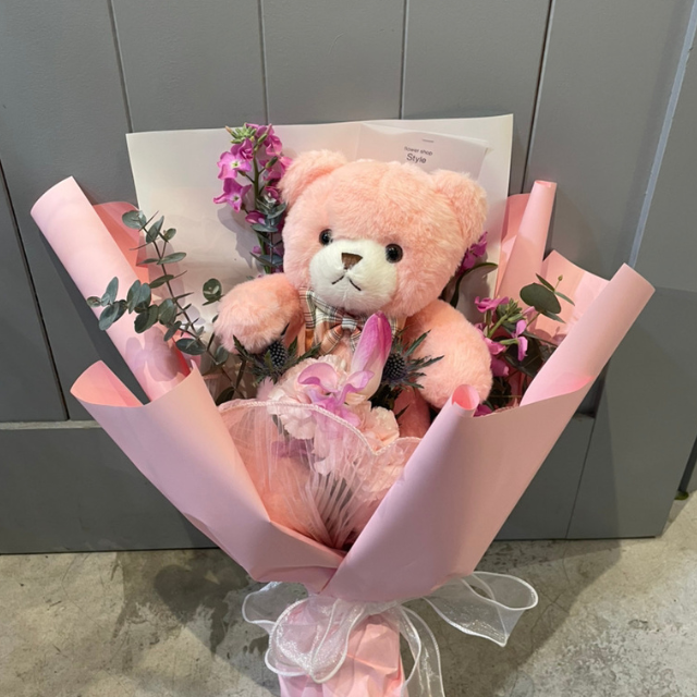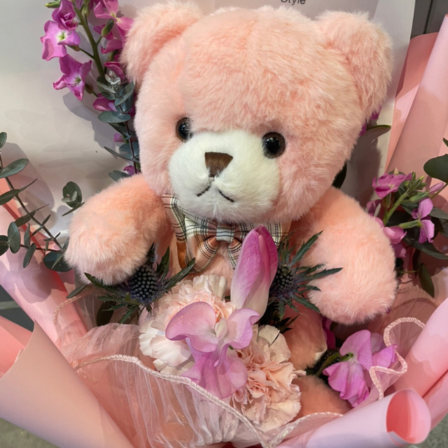 お花が咲き終わった後も、ぬいぐるみはそのまま思い出として飾っていただけるのがこのブーケの嬉しいポイント。